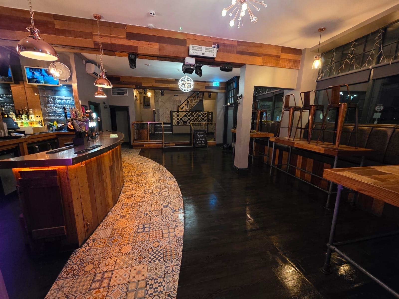 Currently trading 2 days a week, operating as a busy town centre late night bar as well as additional private hire function room.